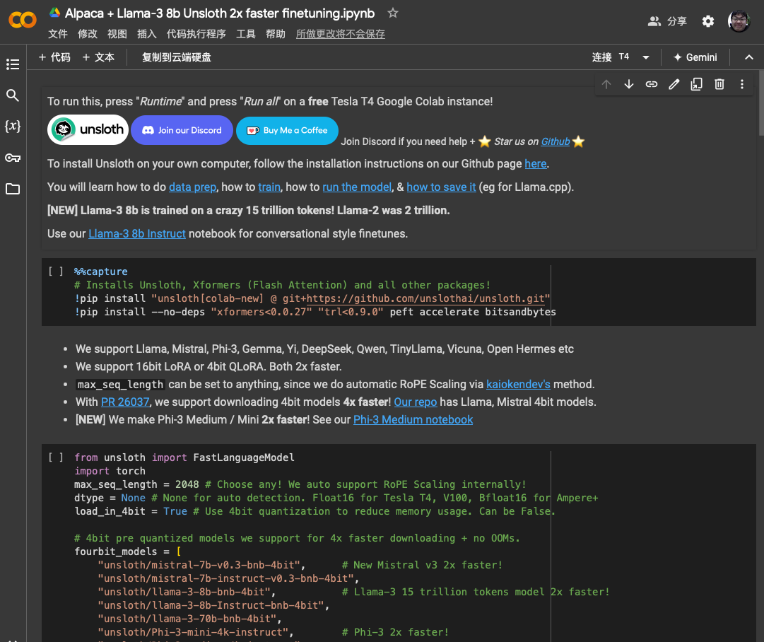 - 使用 unsloth.ai , google colab 训练微调 llama3 大模型
