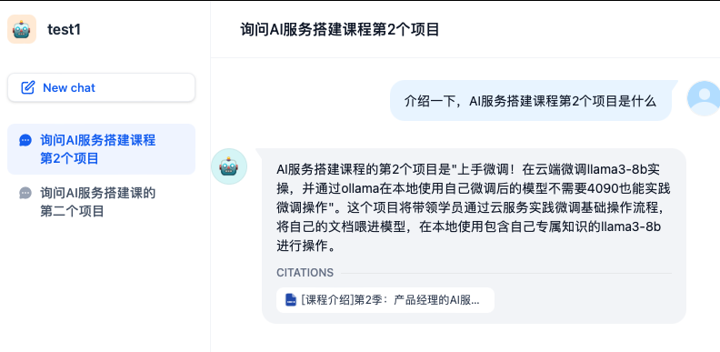| 5 | 已上线 | 上手微调,把数据集喂进llama3.1-8b,并在电脑本地使用微调后的模型 | 线上微调模型+操作本地模型 |